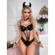 Кожаное боди черного цвета с наручниками и цепью и обручем Hellish Gerl Black M